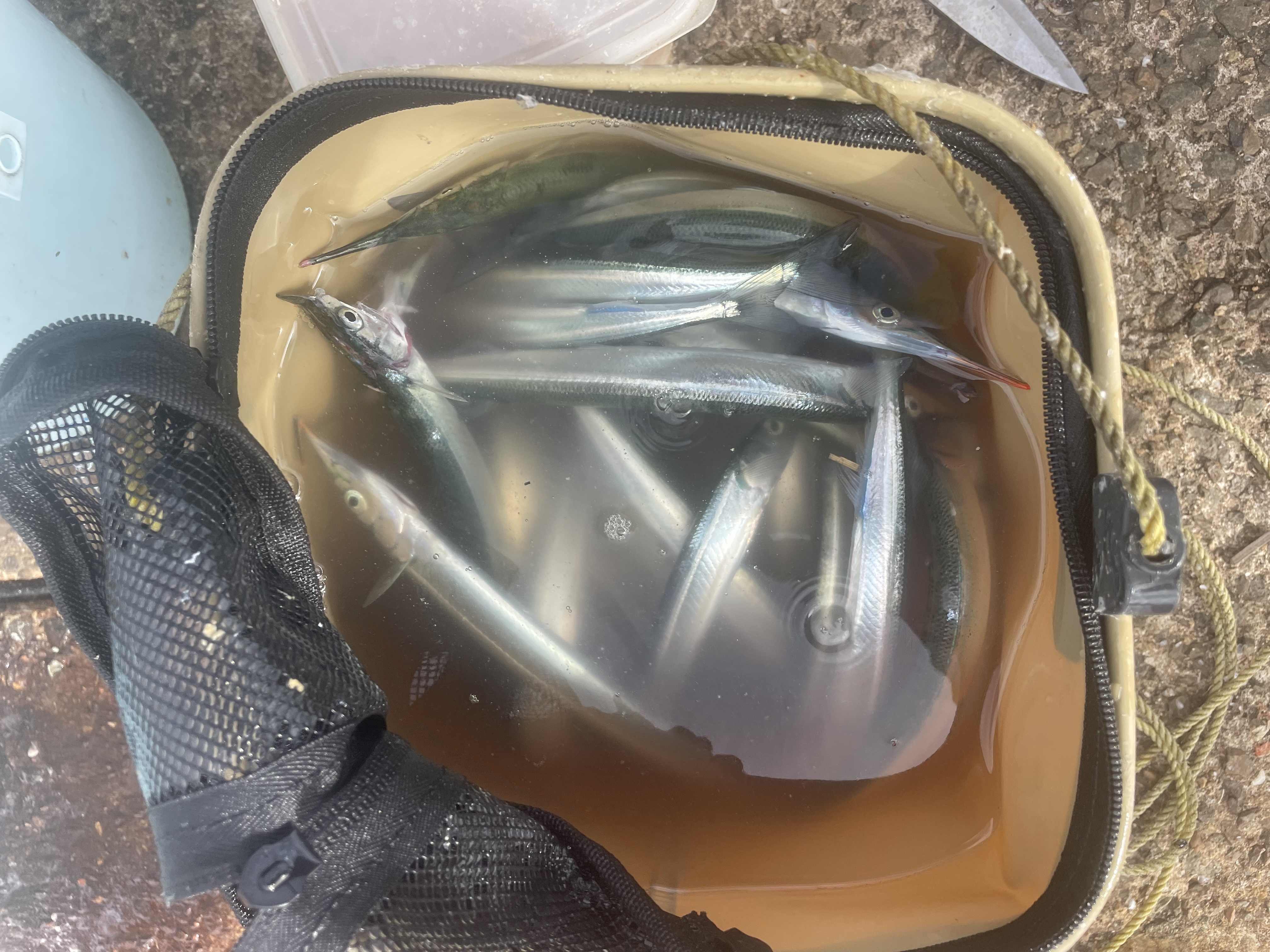 サヨリは掛かってのバラシが何回かあったようです、日中は風が強く波があったのできちんと合わせにくかったですが、釣れて何匹は足元まできたのでサヨリはちゃんと回遊してます。