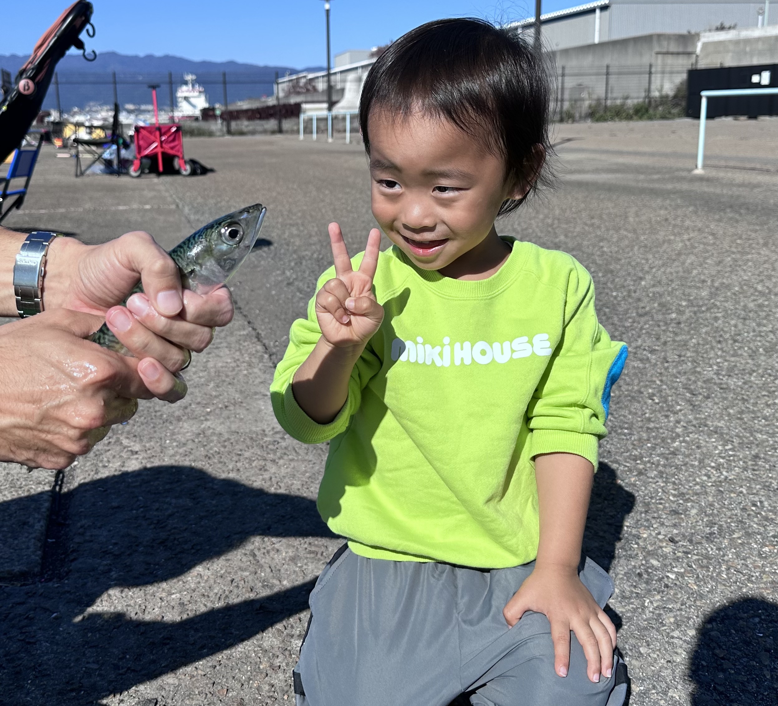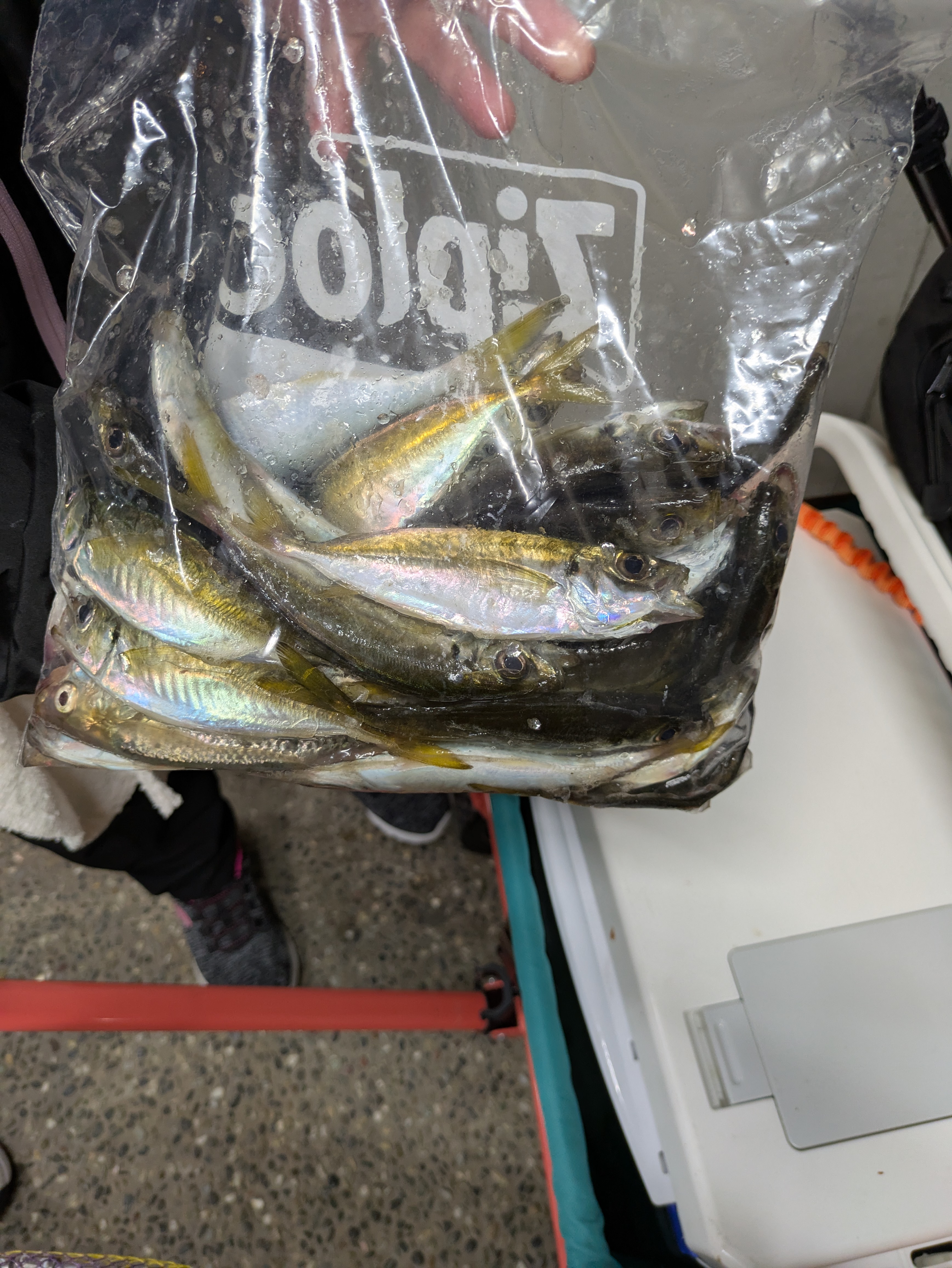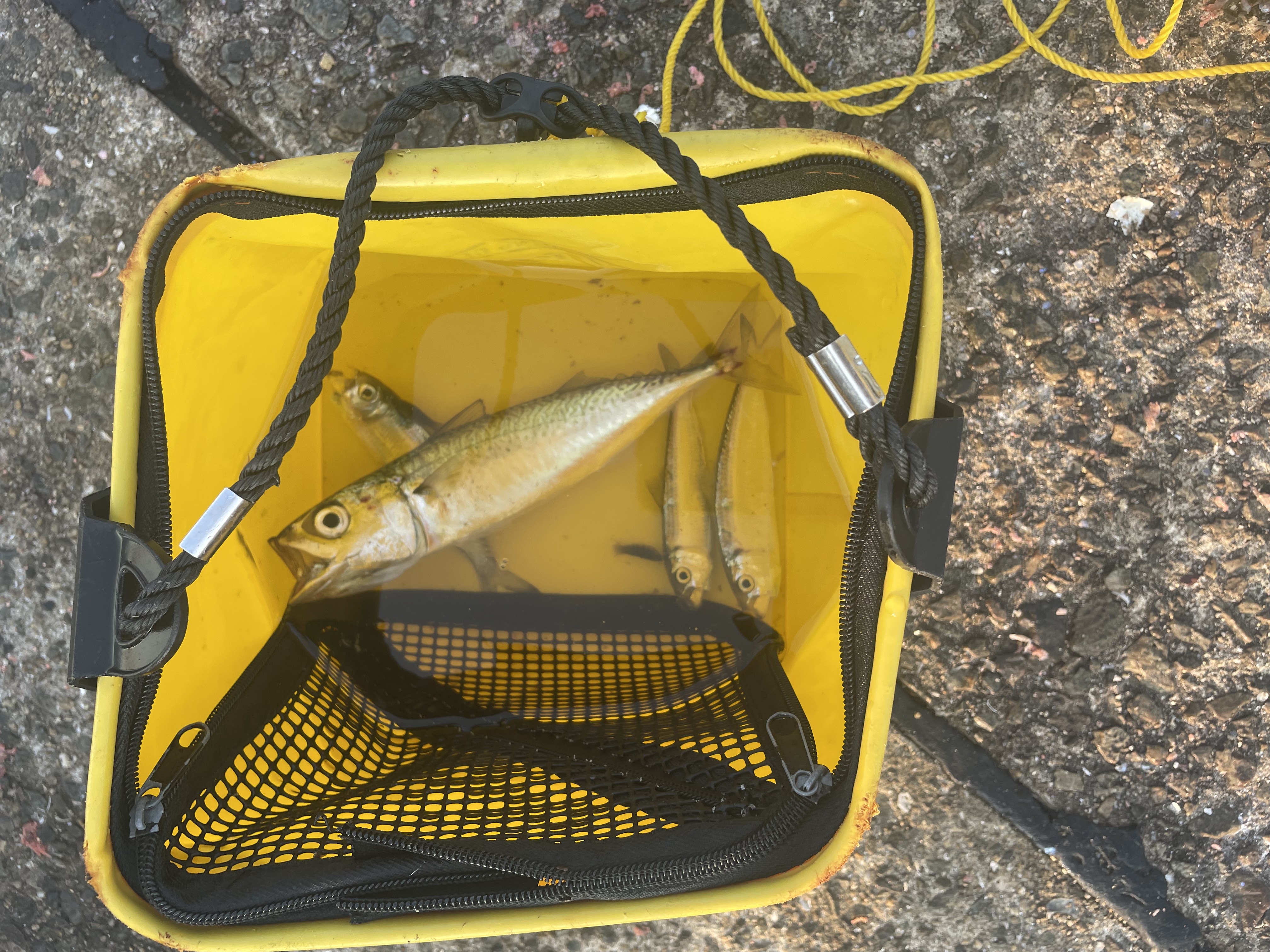 午後、13時頃にサバの回遊がありましたがそれ以降はカタクチイワシが少し釣れてました。サバはサビキ仕掛け4号、5号でいいのですが、カタクチイワシは2号くらいがいいように思います。