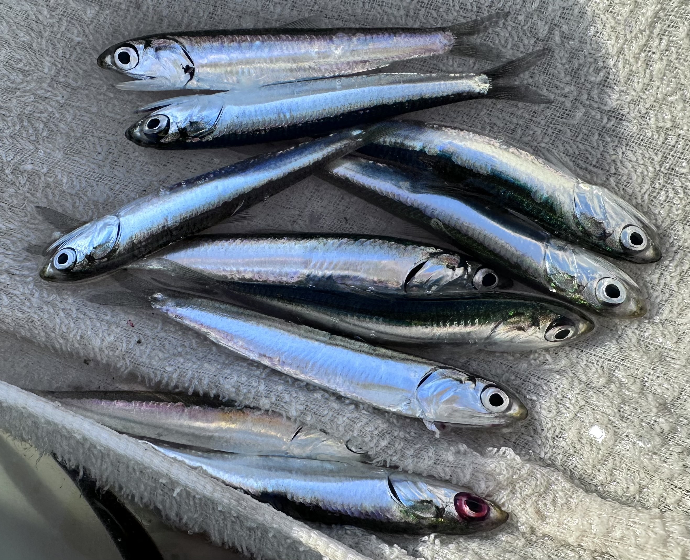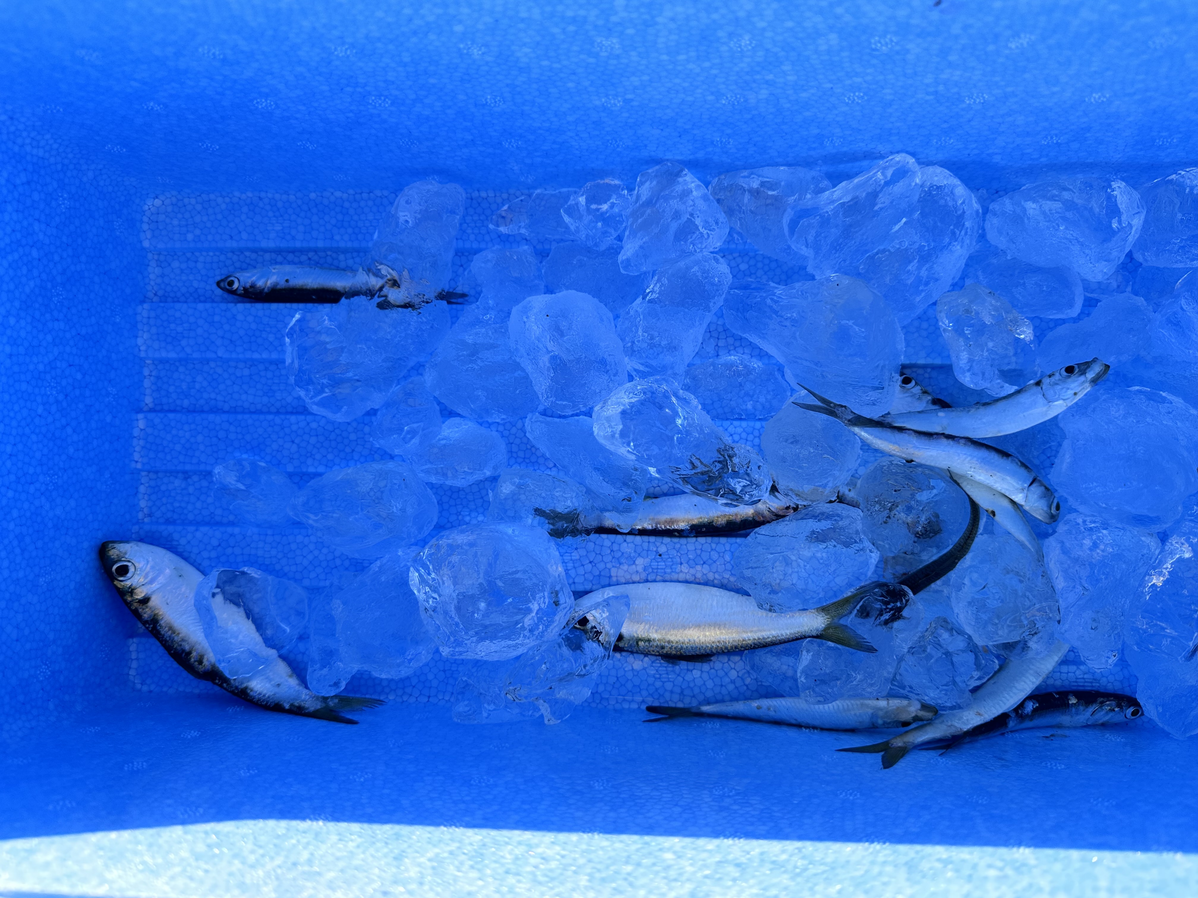 本日は、カタクチイワシ、サバとサッパが少々釣れております。