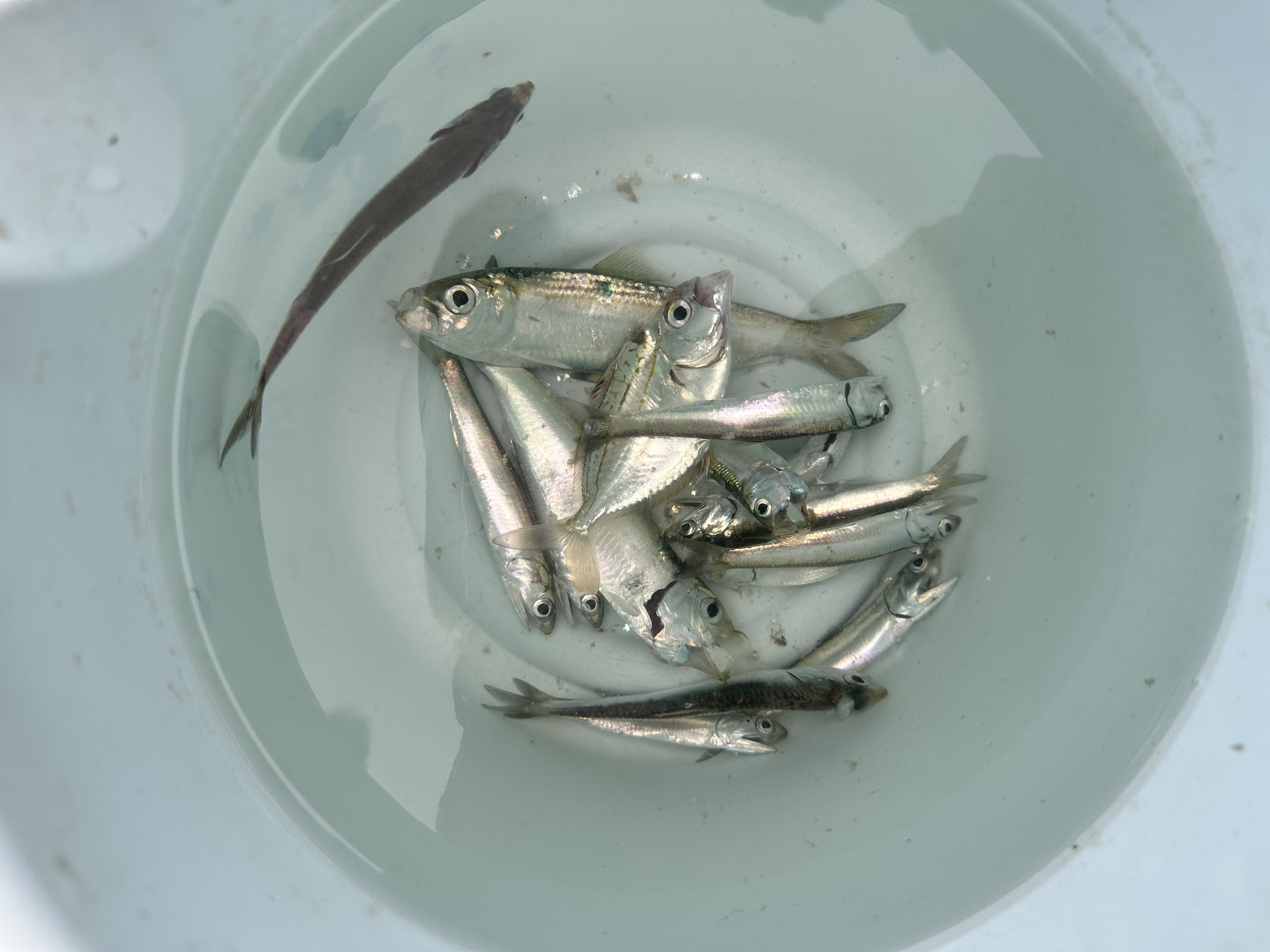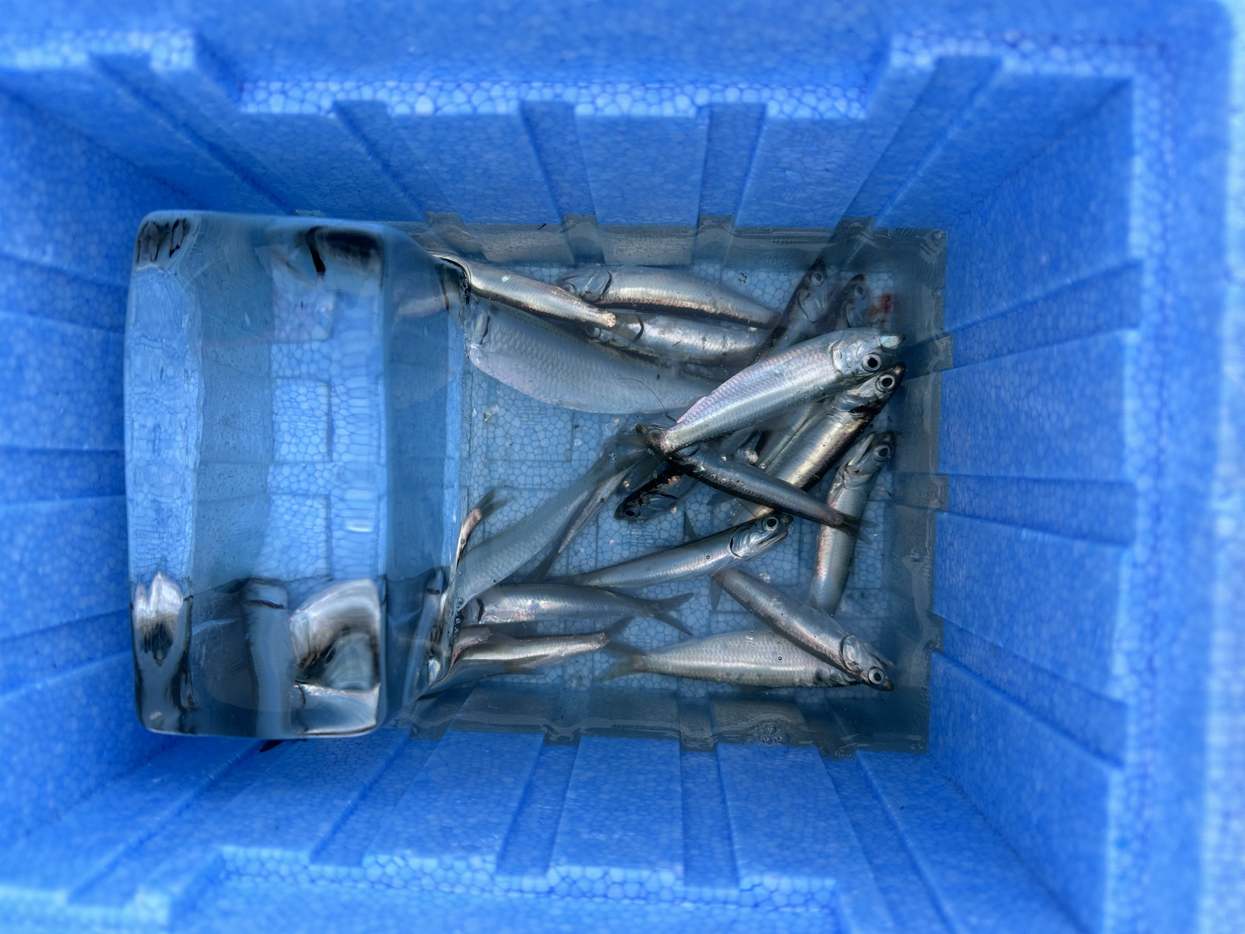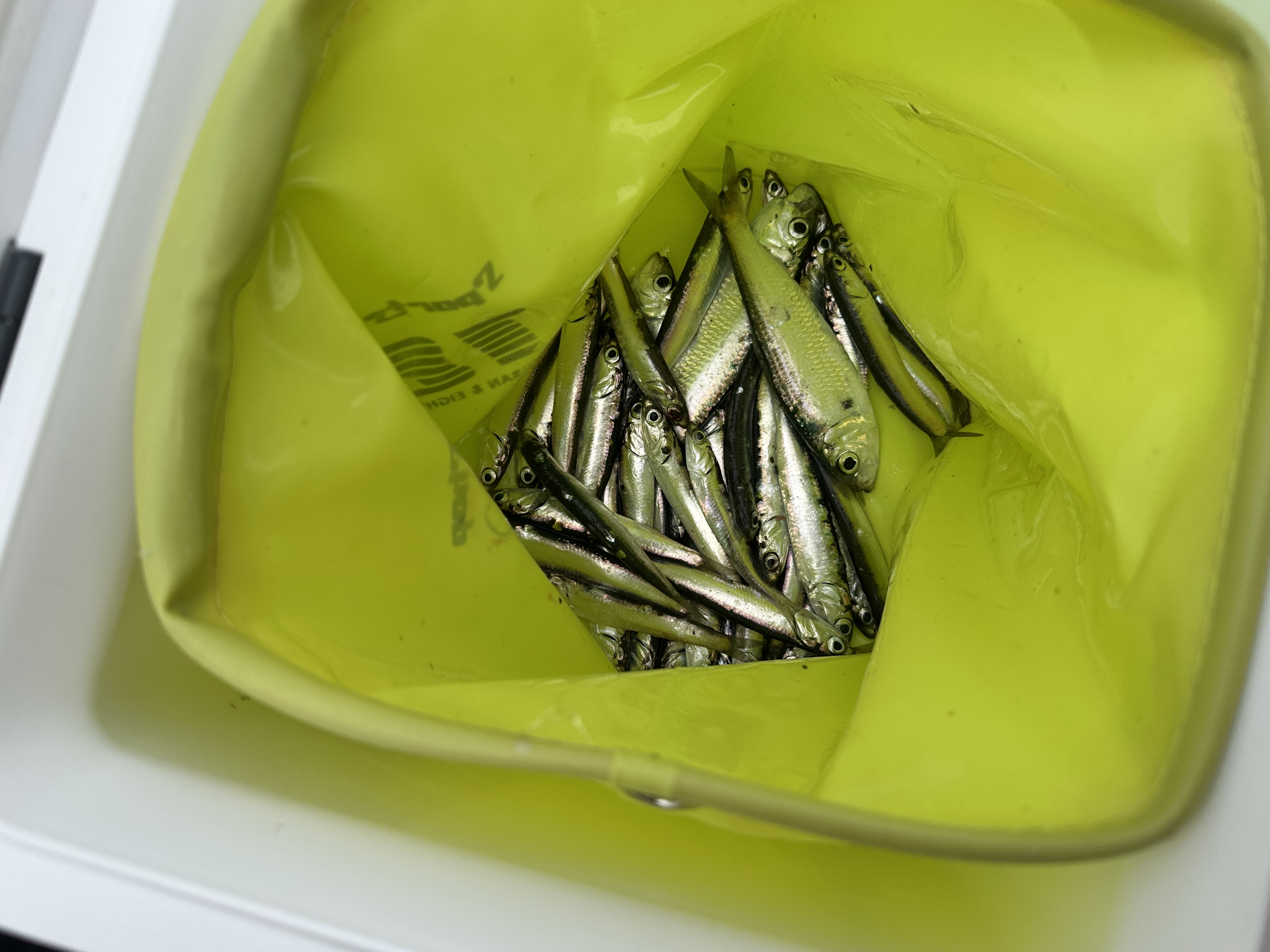 イワシが中層付近でポツポツ、サヨリもやや遠投でポツポツ釣れています。