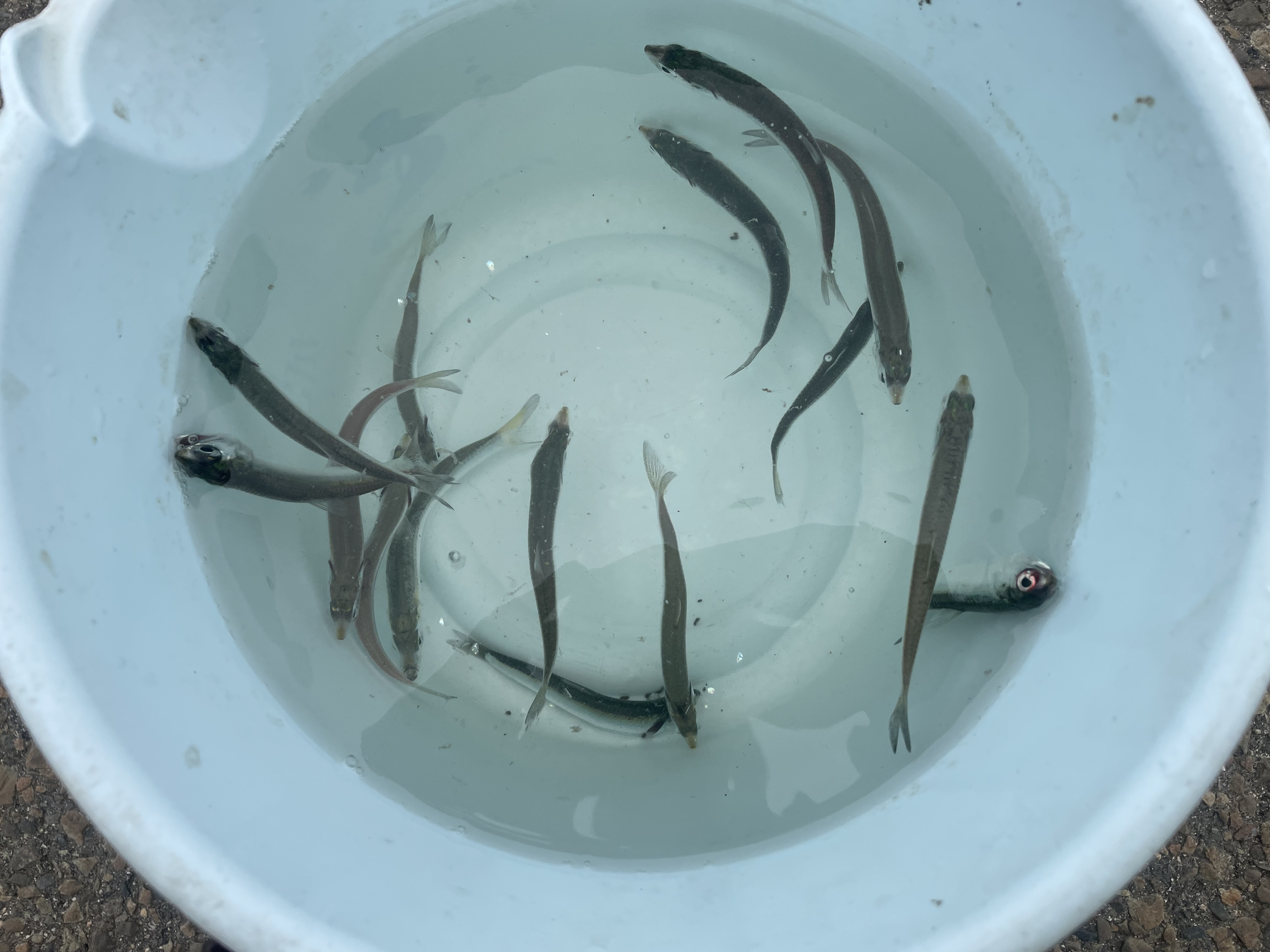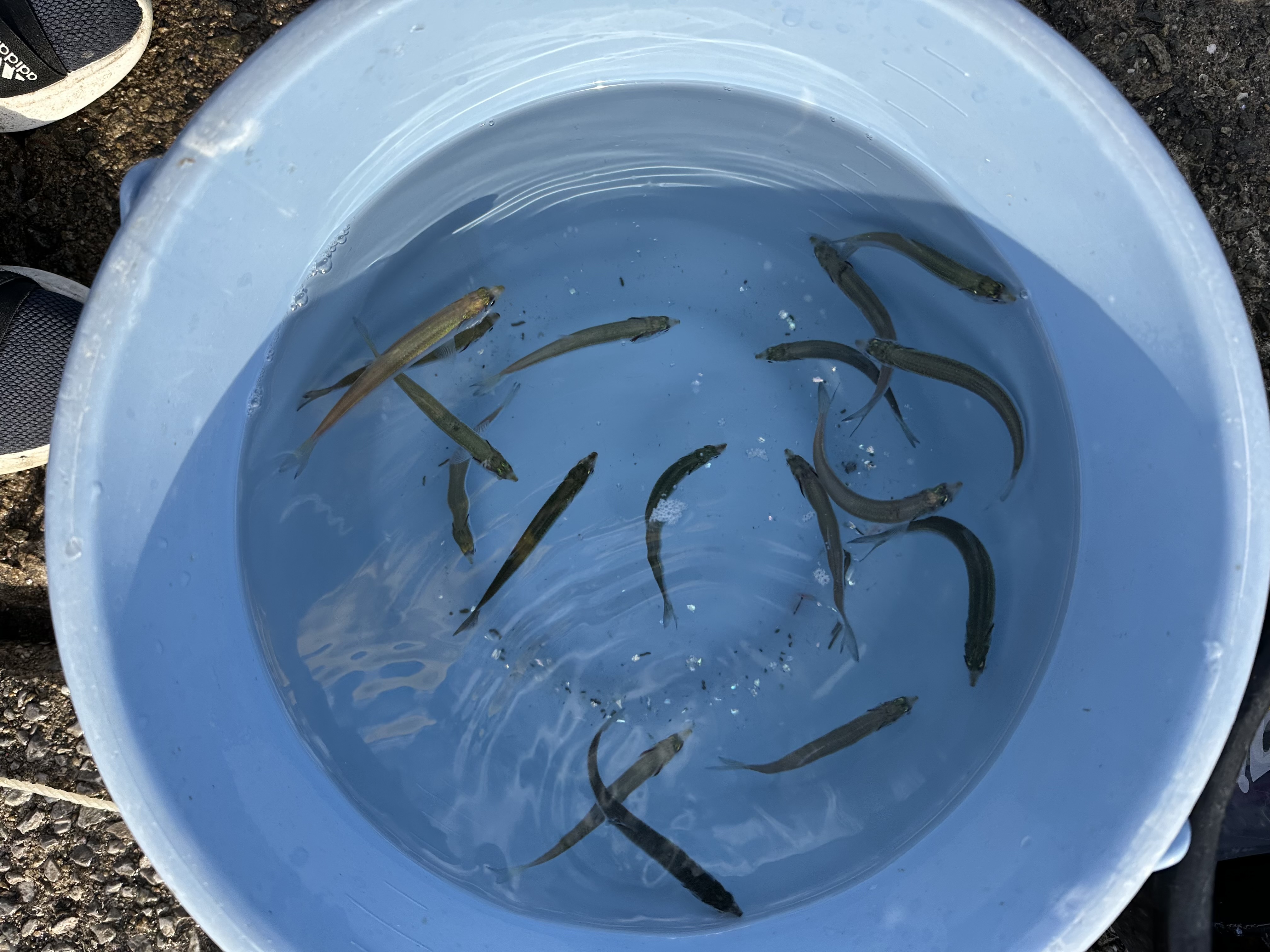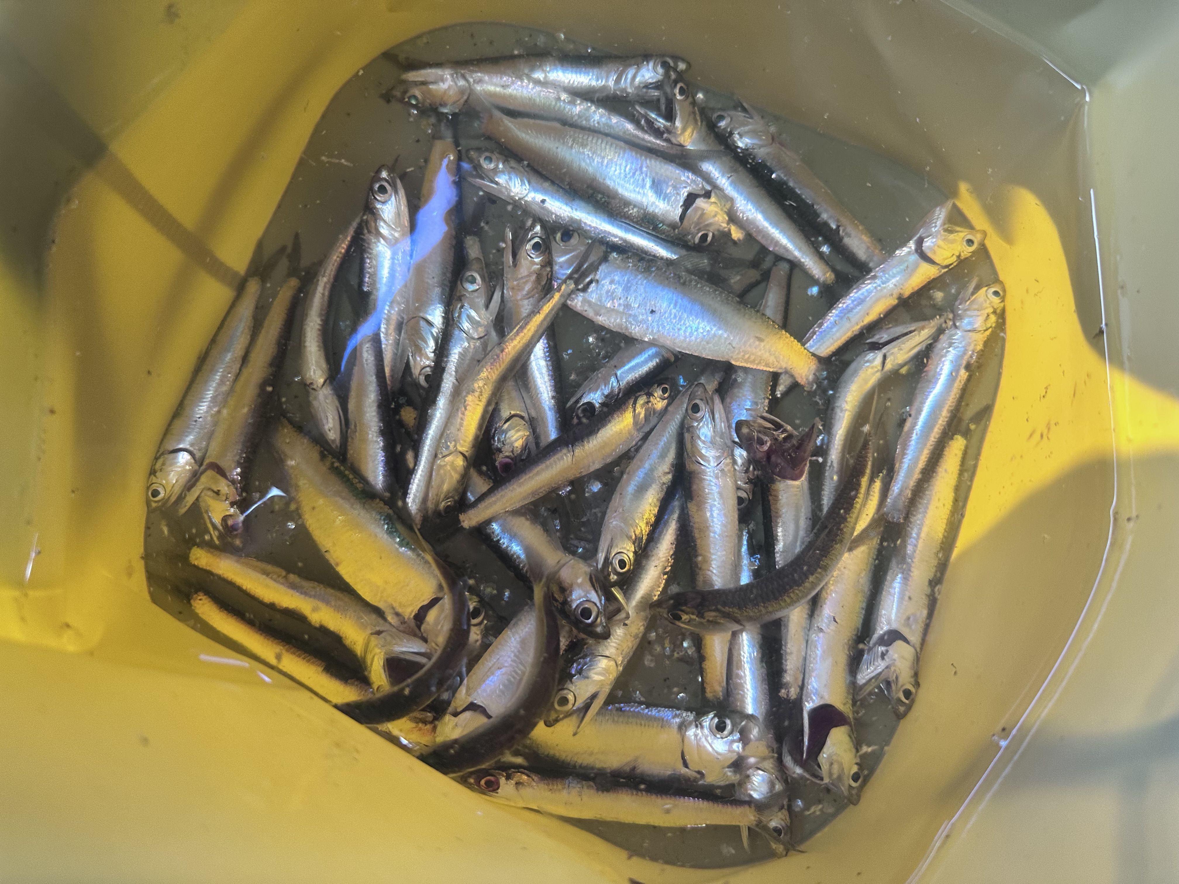 イワシが中層付近でポツポツ、サヨリもやや遠投でポツポツ釣れています。