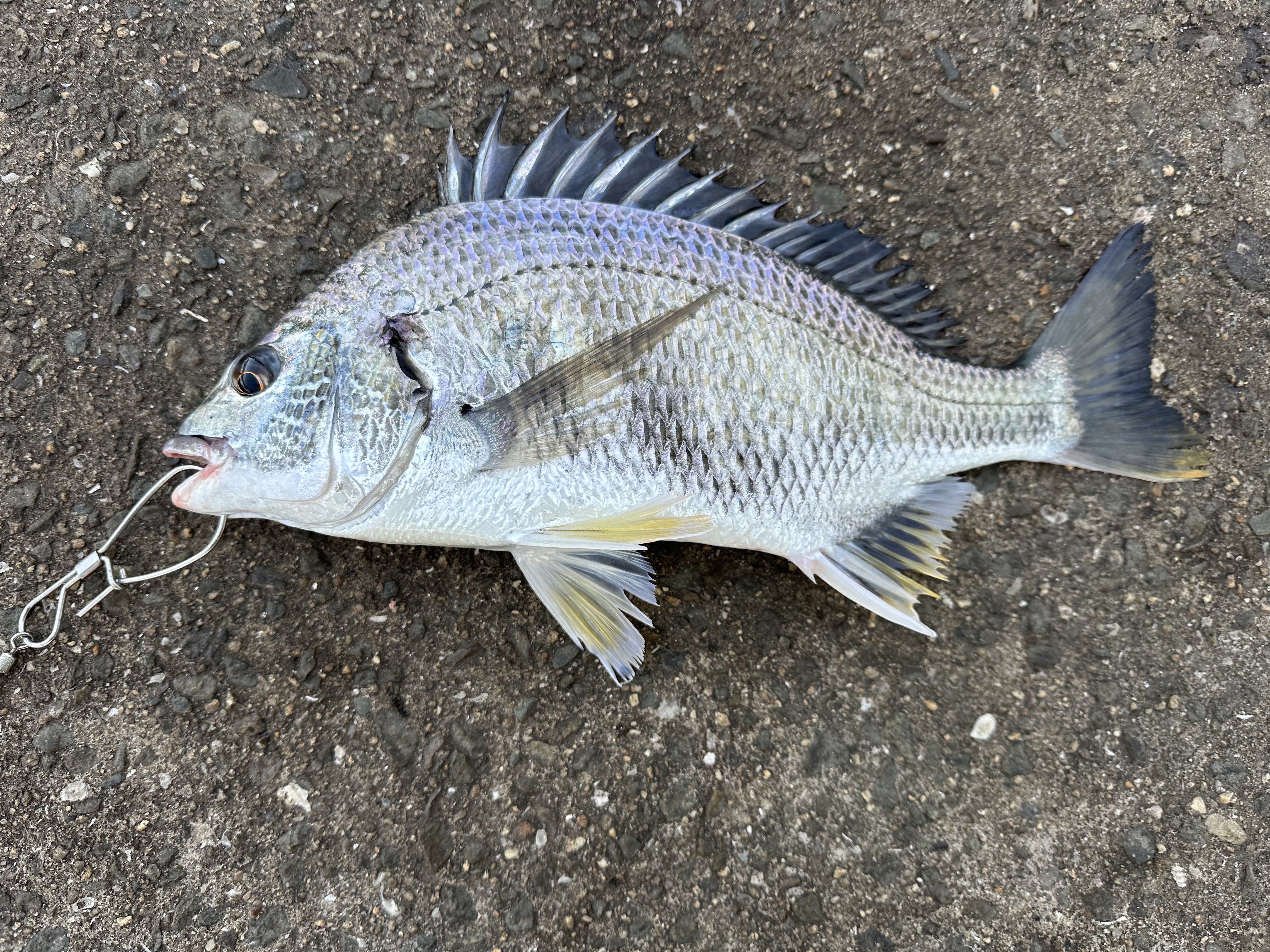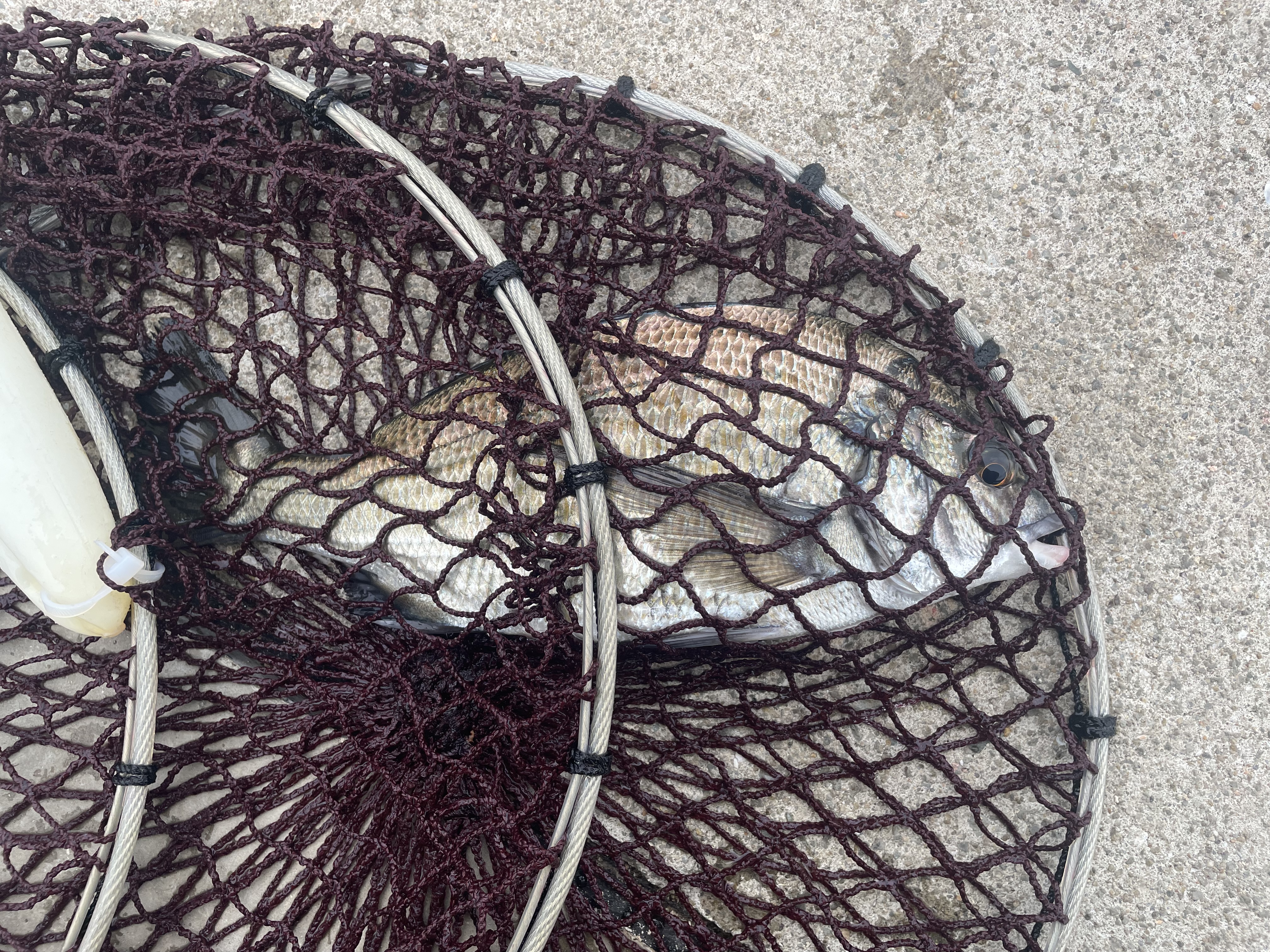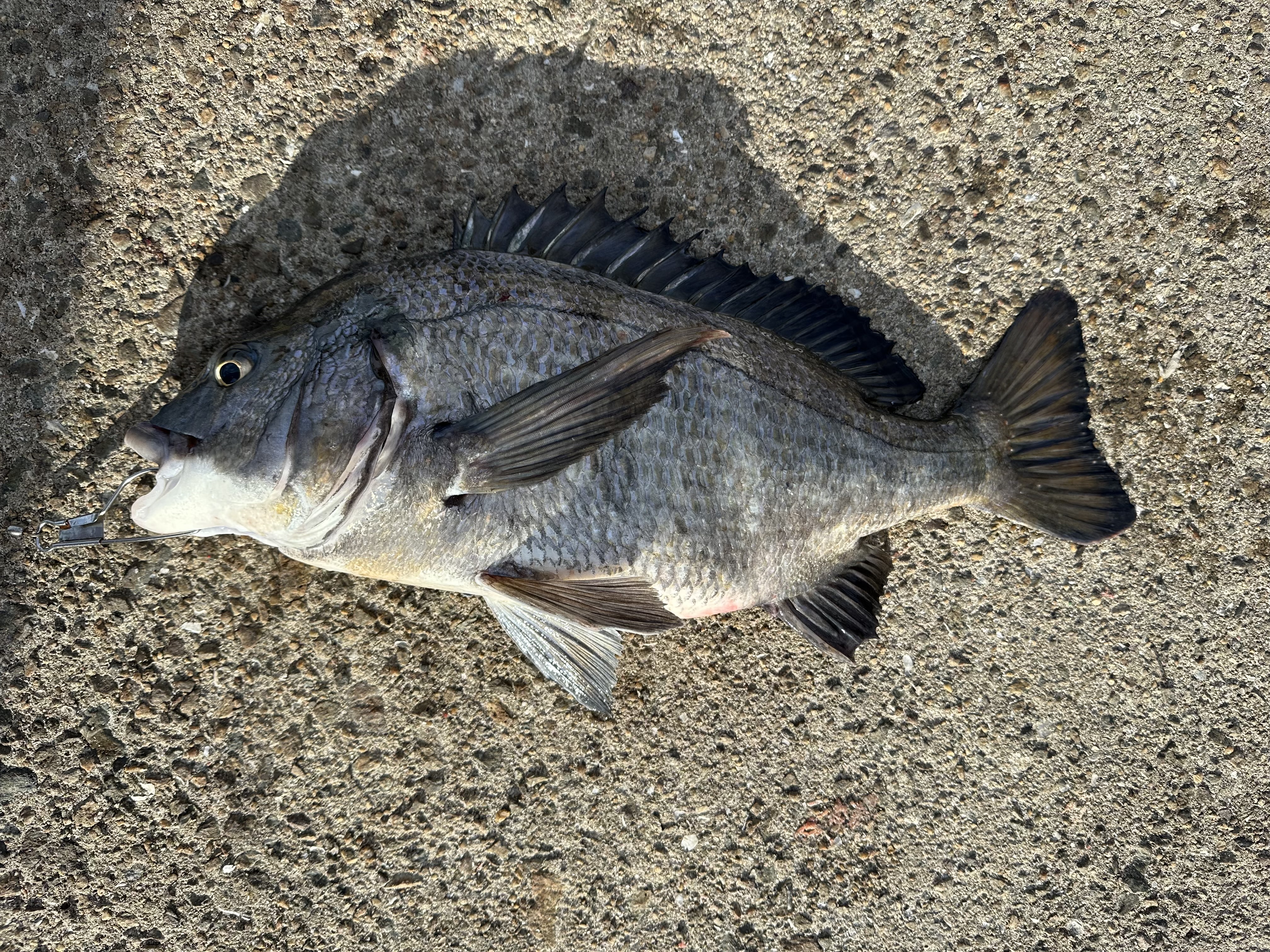 夜明けからオキアミ餌のダンゴ釣りでチヌ釣れていました。