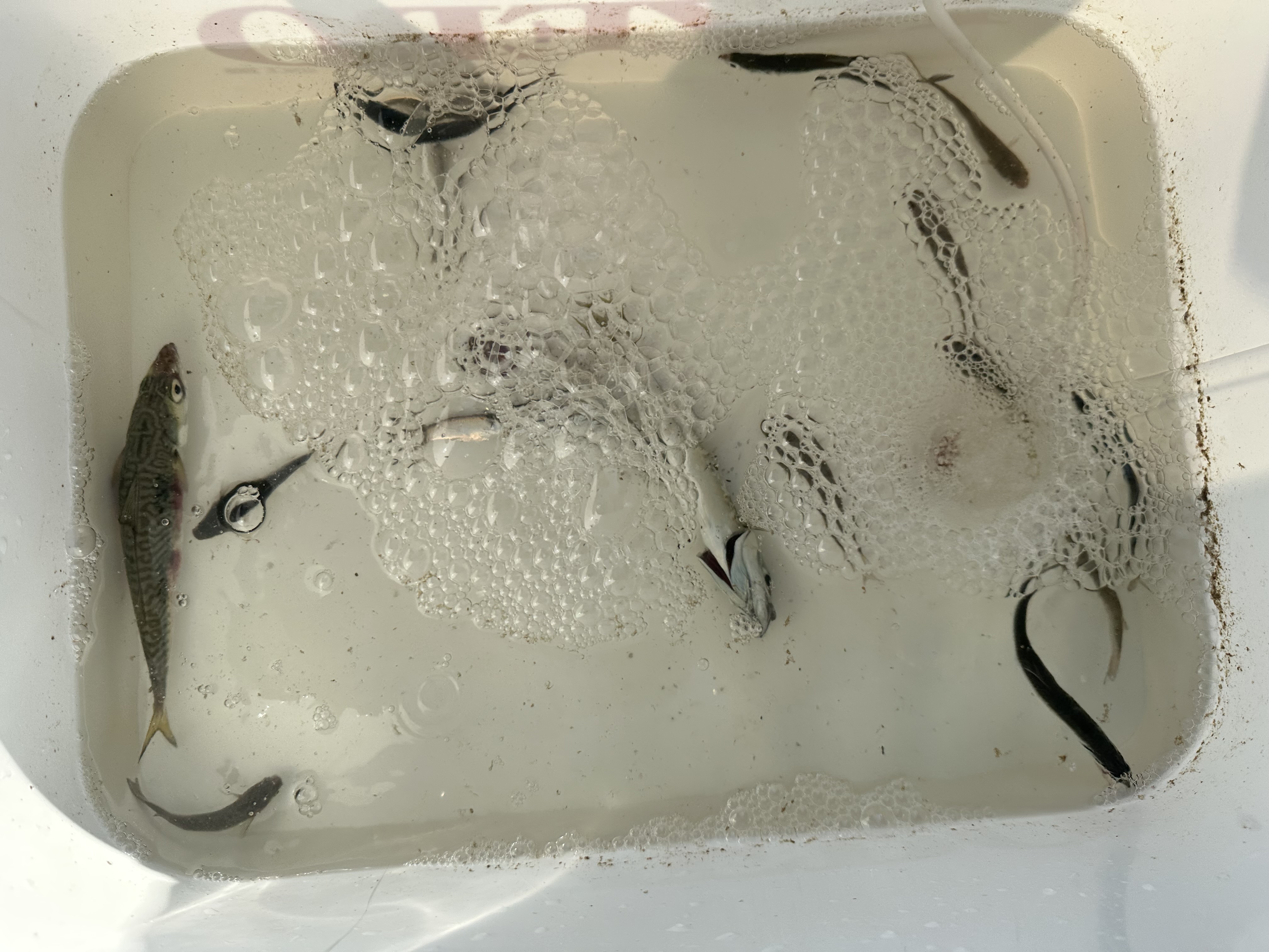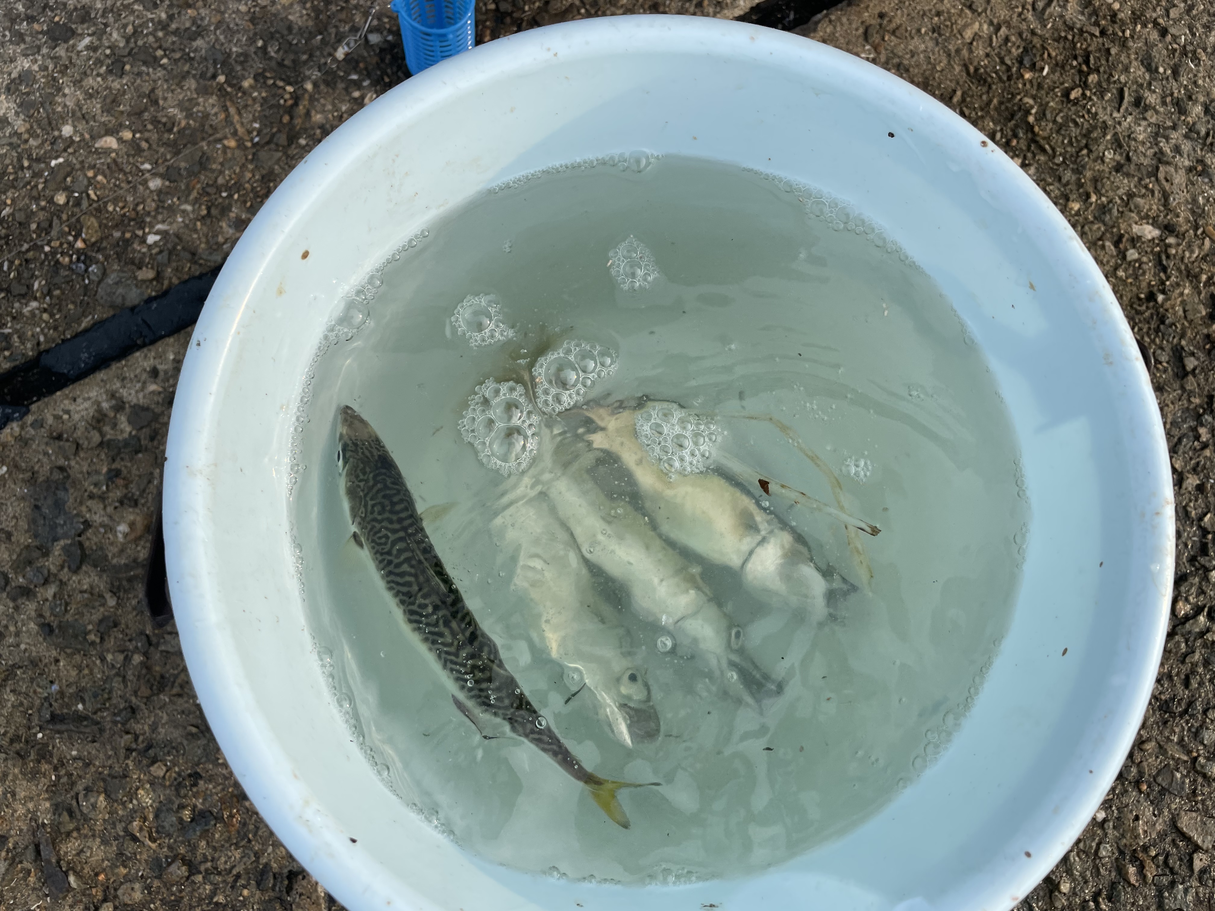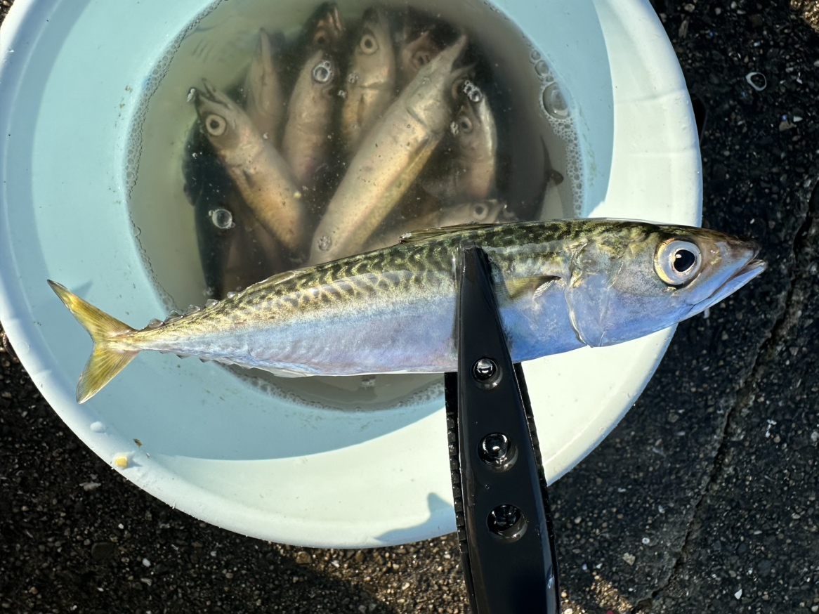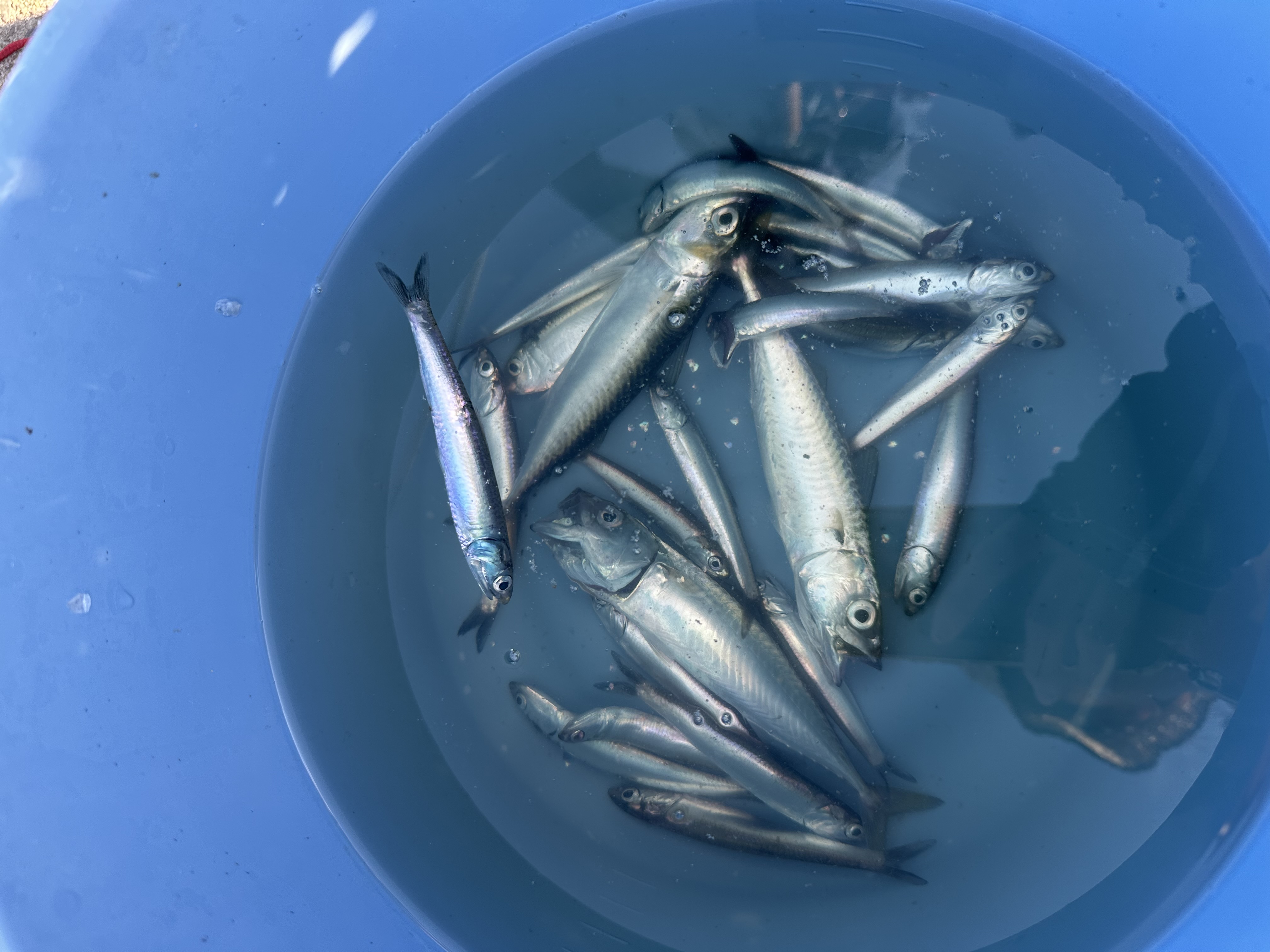 今日の午後はサビキでカタクチイワシ、サッパが少し釣れていましたが数は少なめです。サバは沖に出たのか数は減っています。サヨリはサイズかなり大きくなってきたものもいますね。