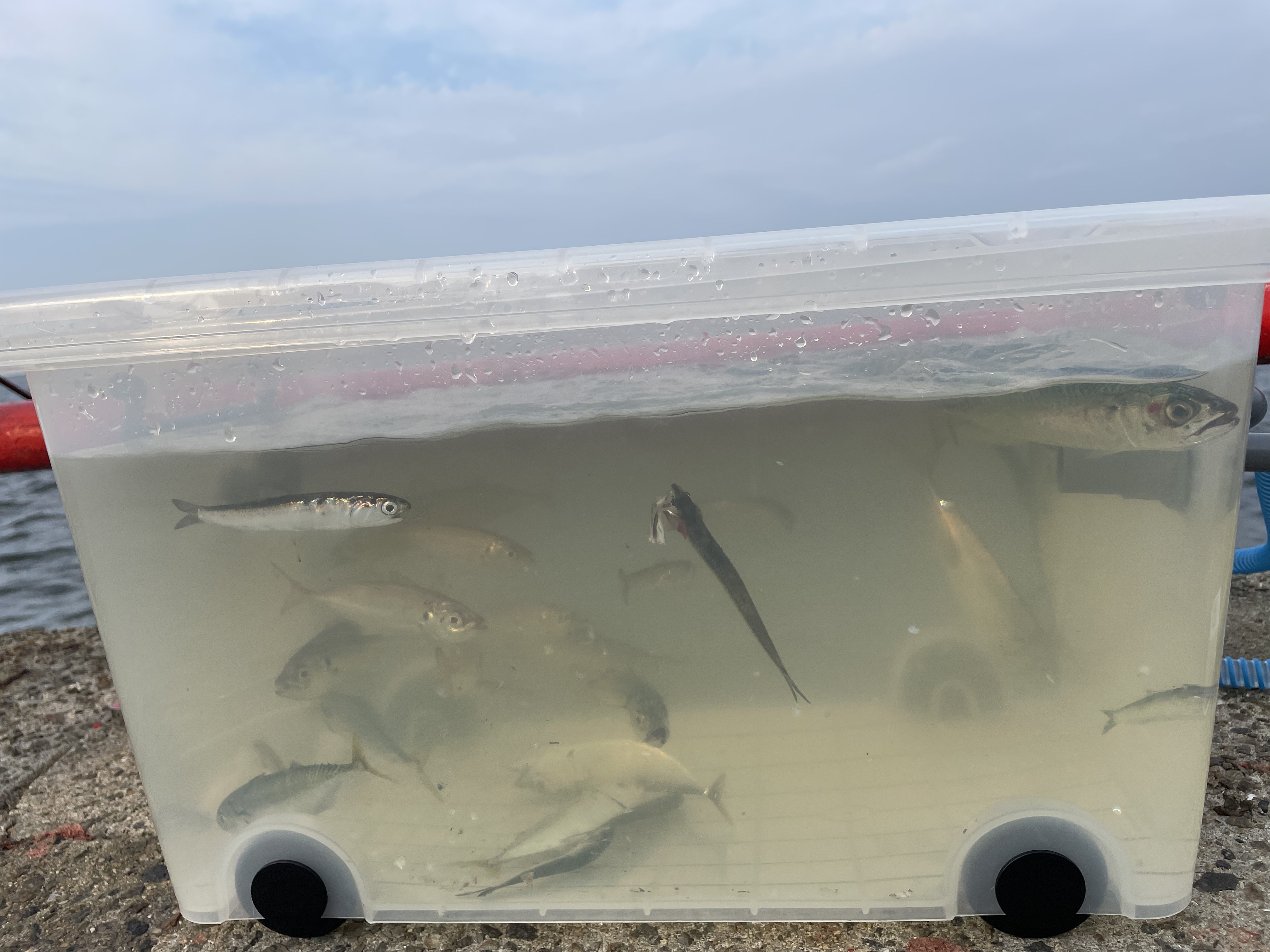 午前中の鳴尾浜は明け方にアジ、サバは多少釣れていましたが日が昇ると止まりました。カタクチイワシは釣れ続けていますが少し食い気が無いようです。サヨリはあまり釣果は伸びていません。