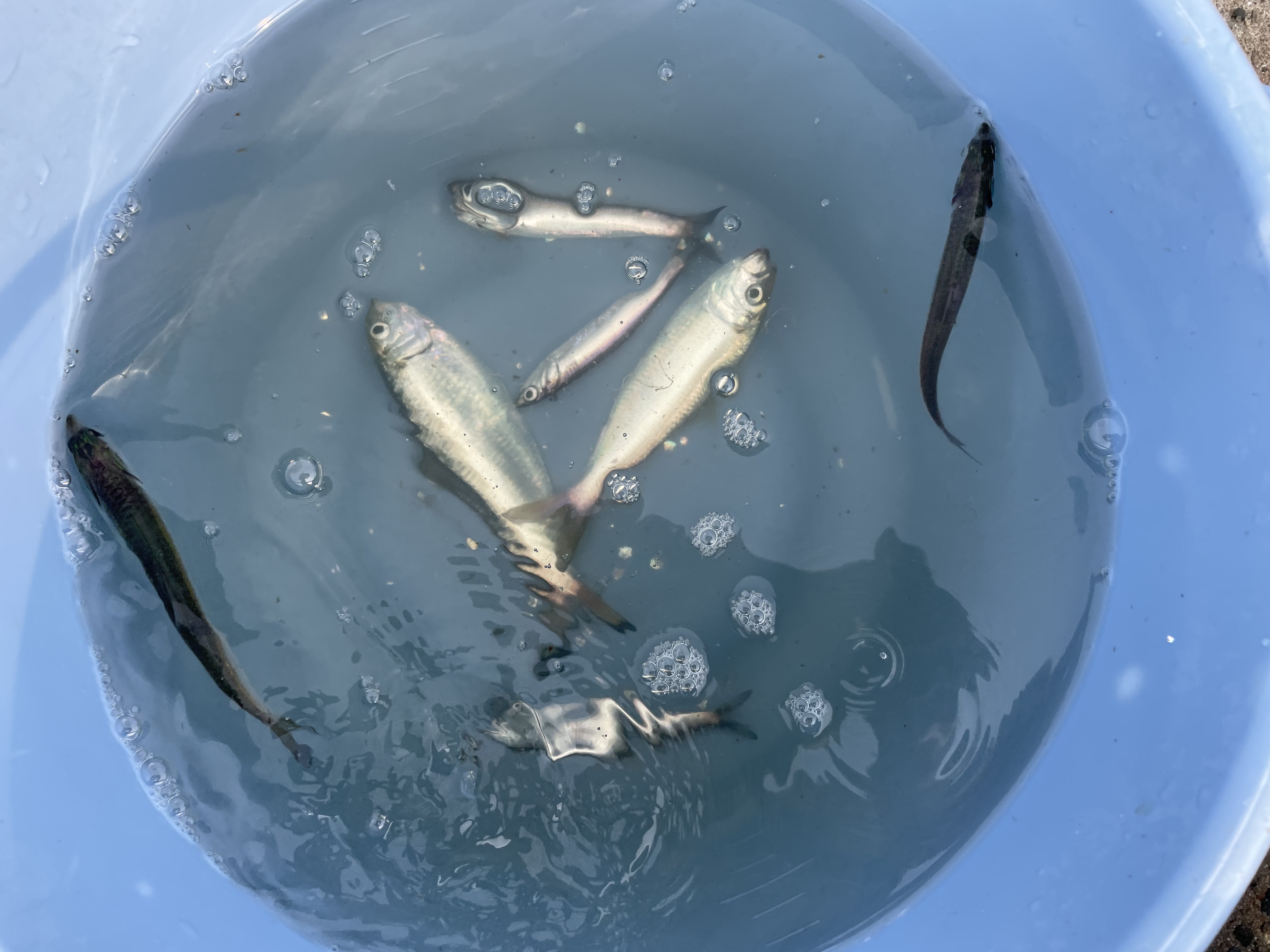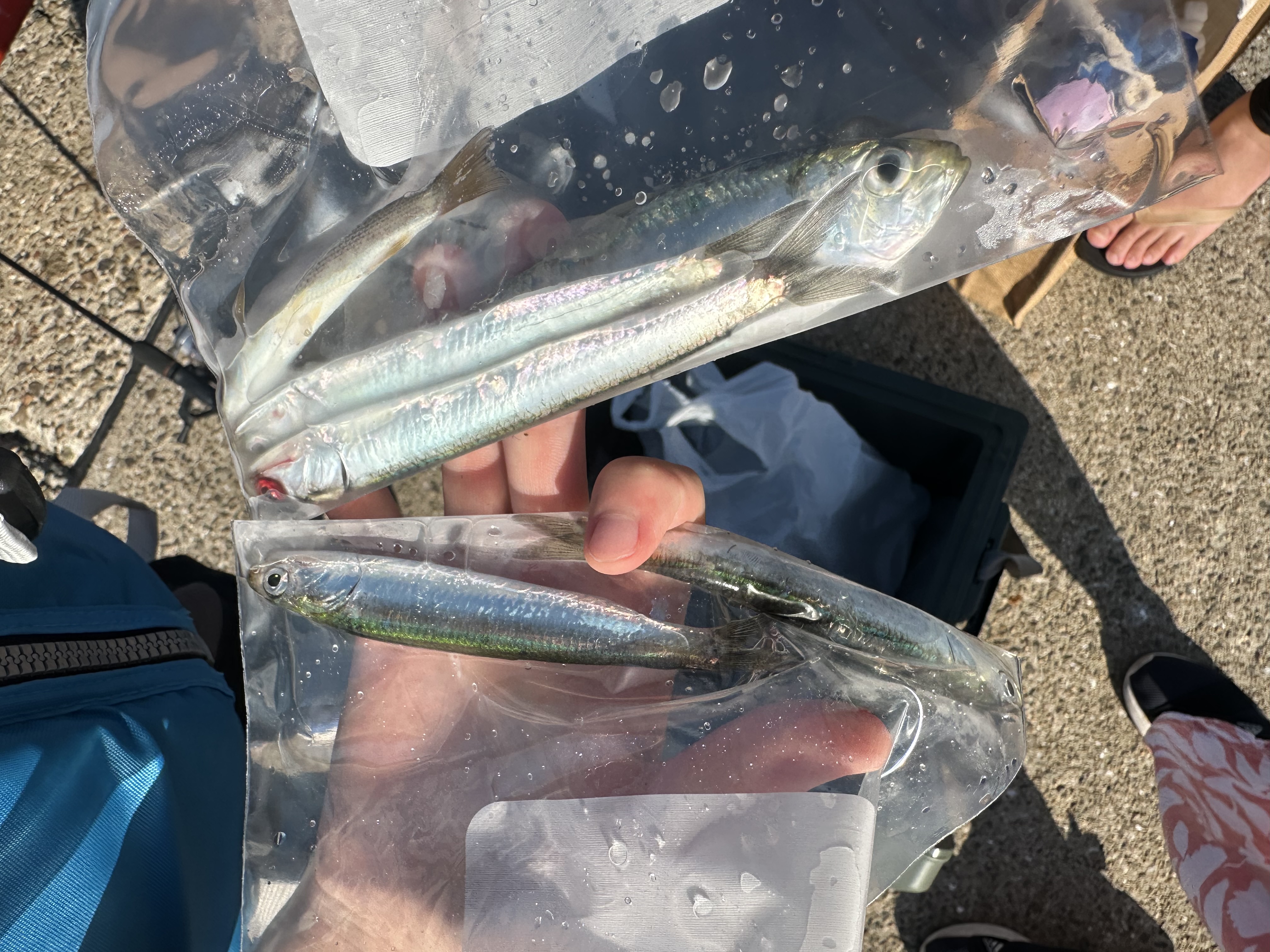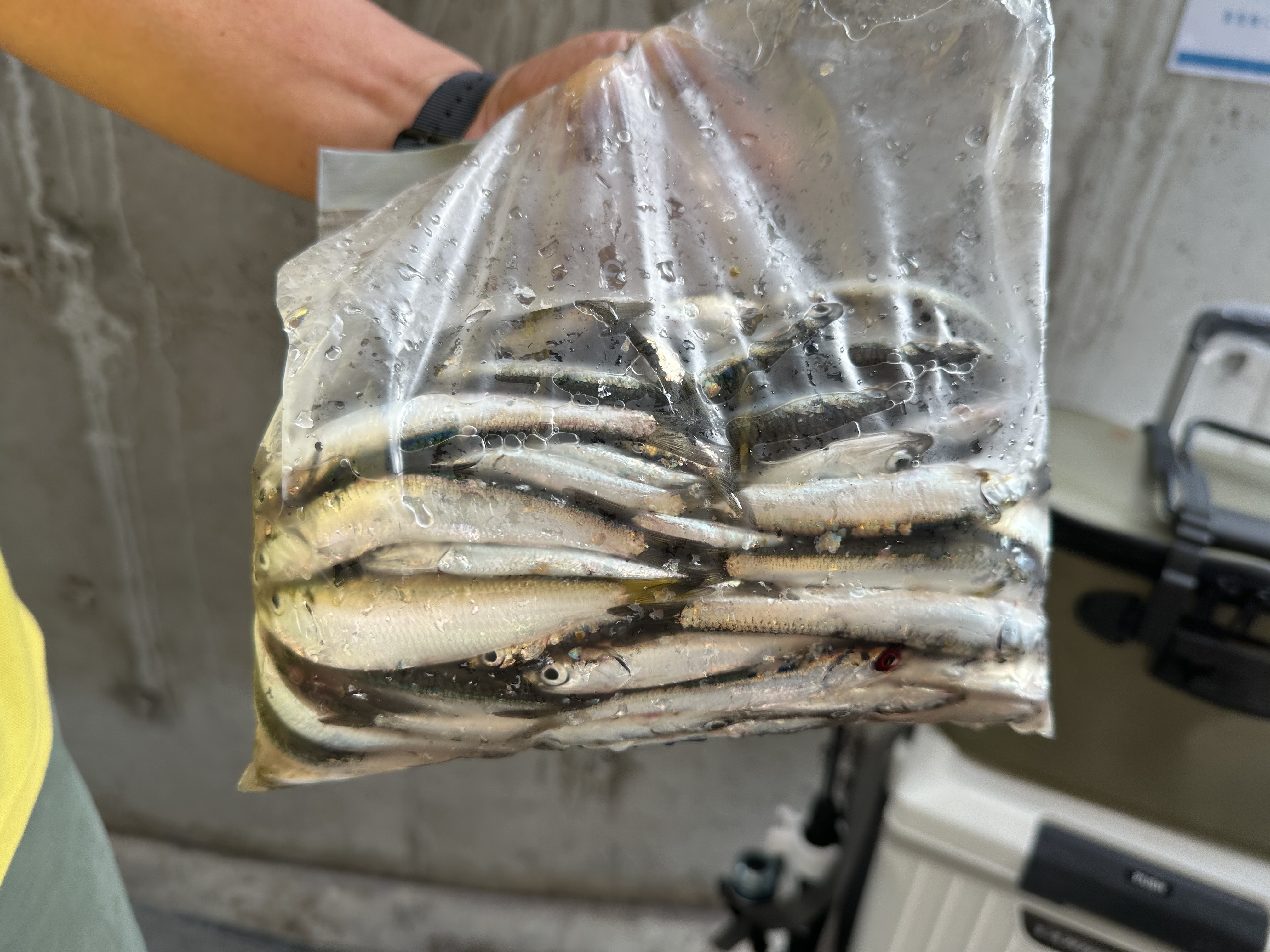 イワシが中層付近でポツポツ、サヨリもやや遠投でポツポツ釣れています。