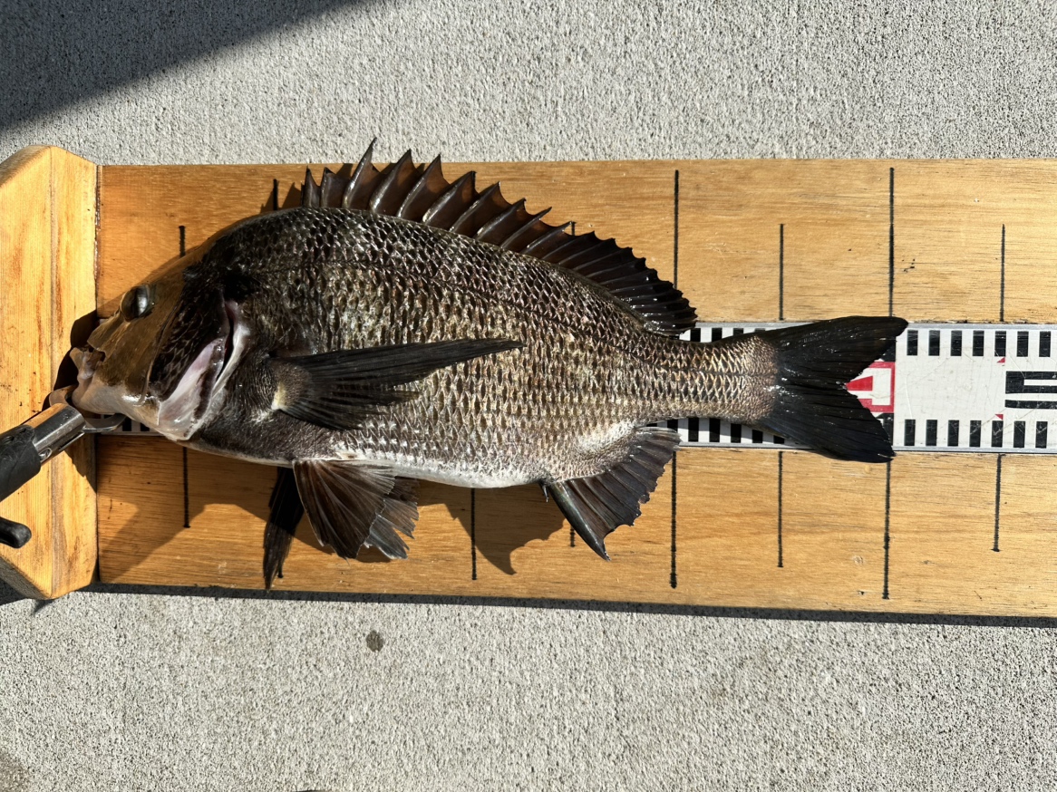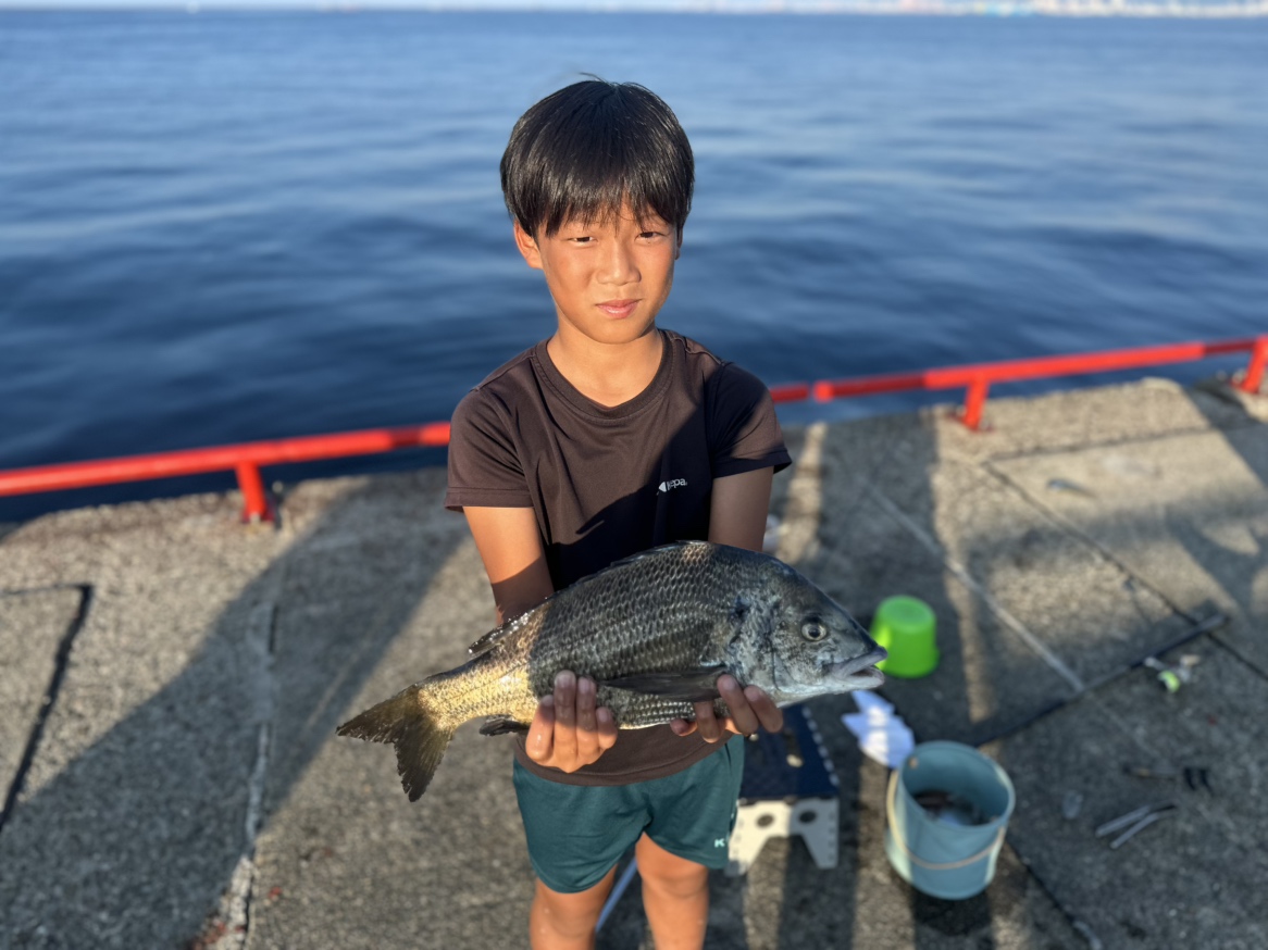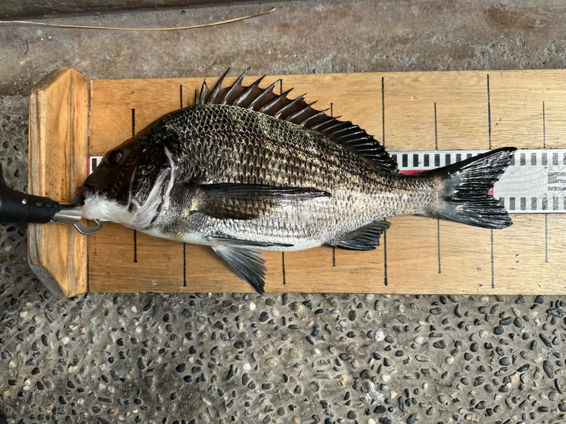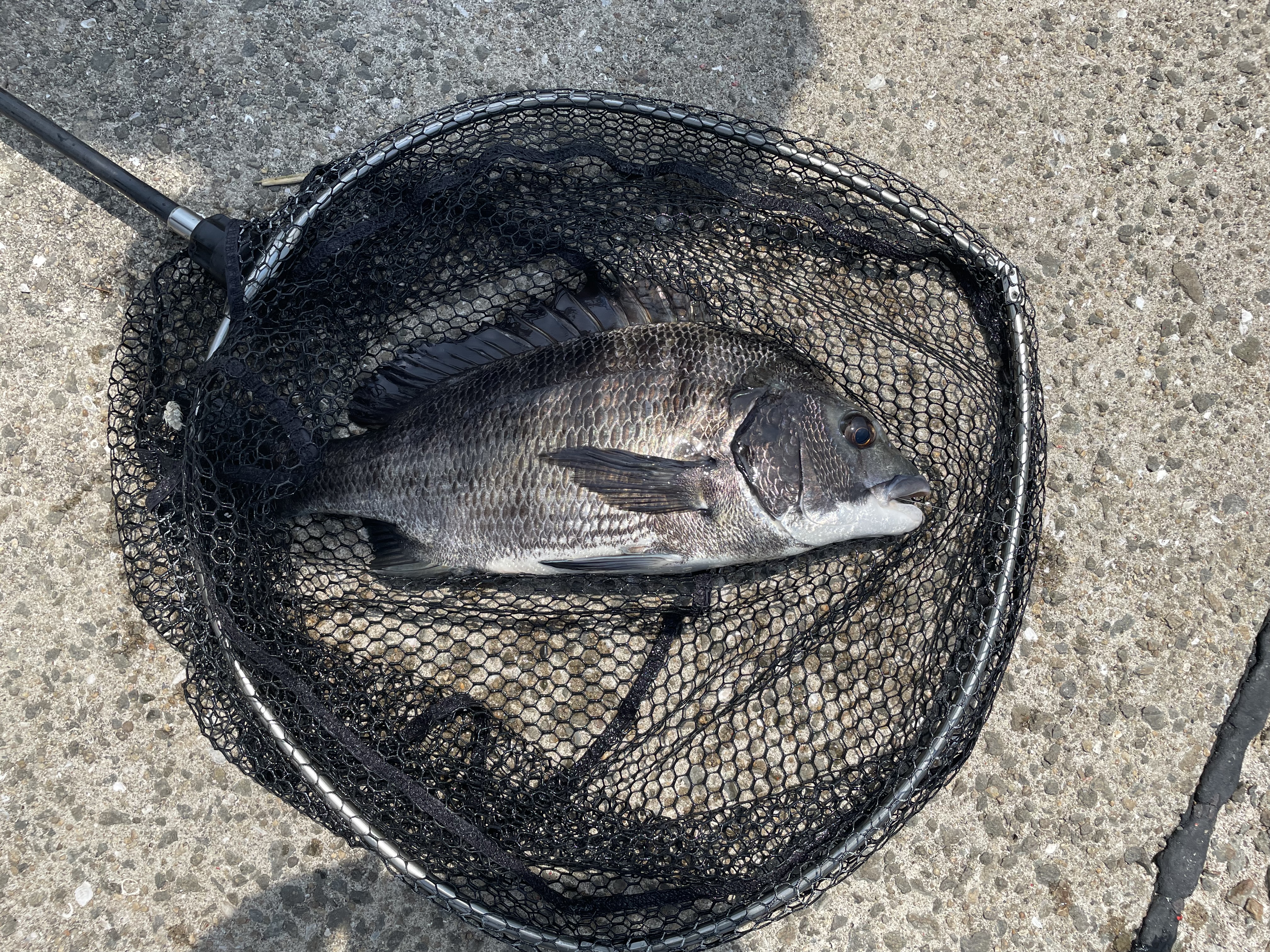 夜明けからオキアミ餌のダンゴ釣りでチヌ釣れていました。