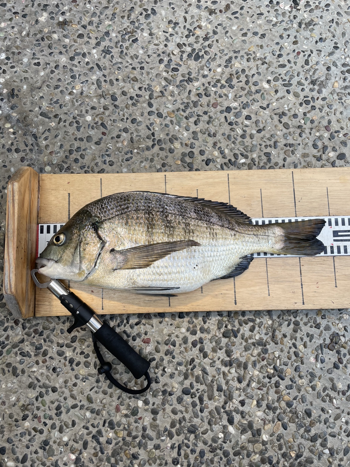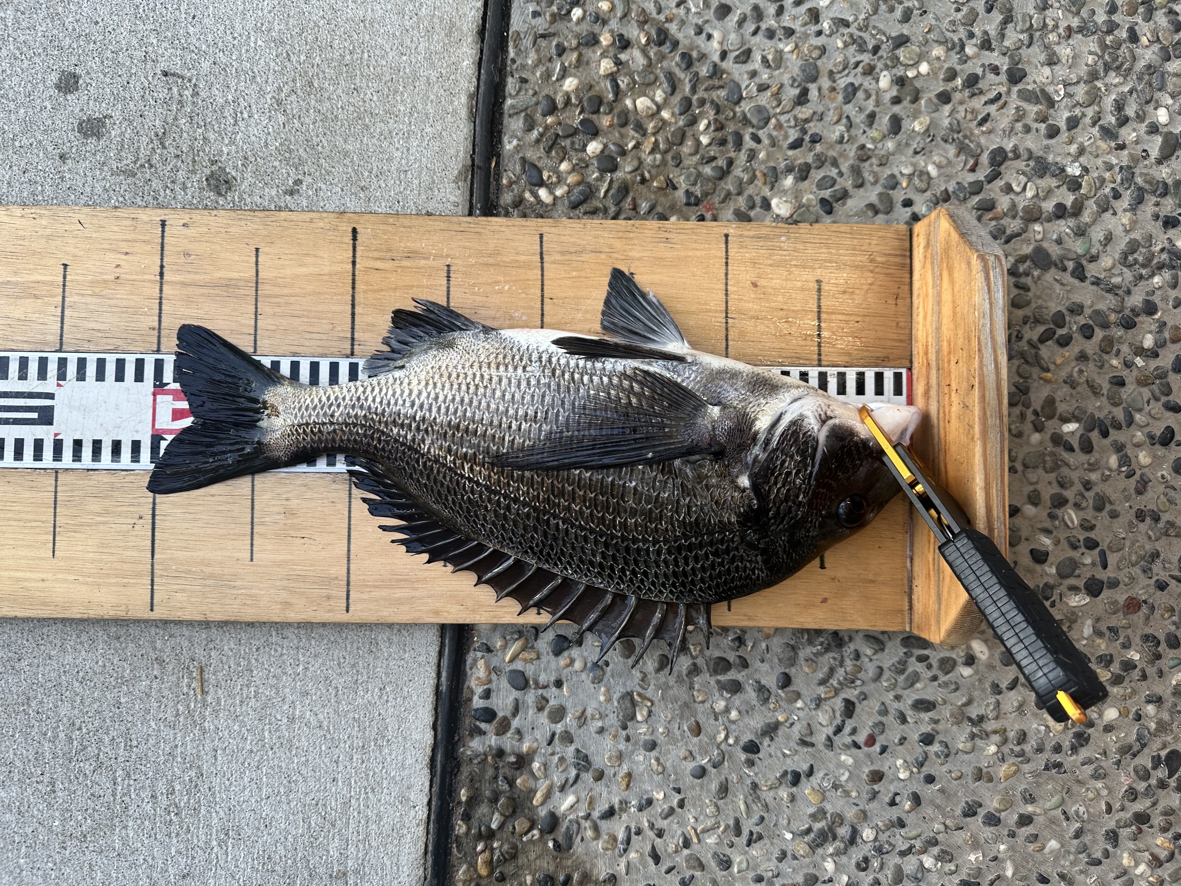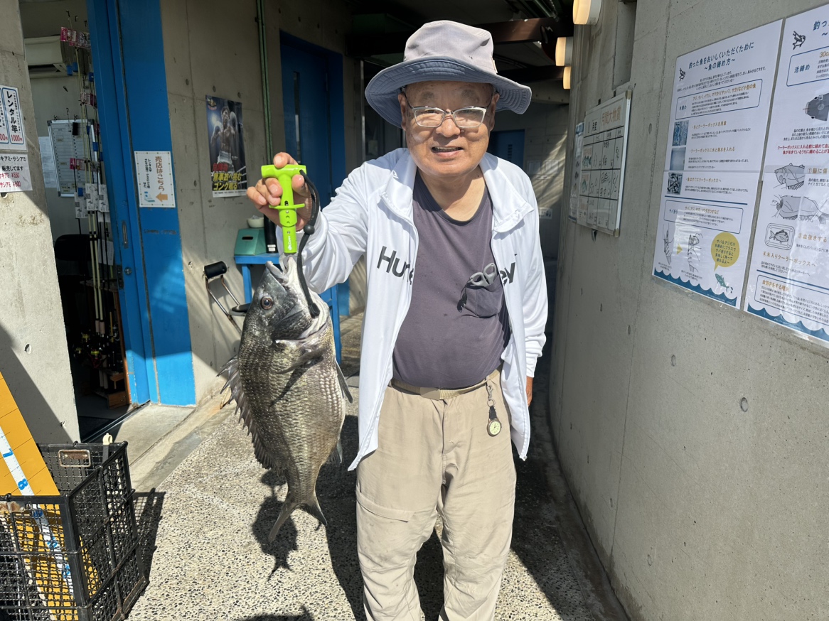 夜明けからオキアミ餌のダンゴ釣りでチヌ釣れていました。